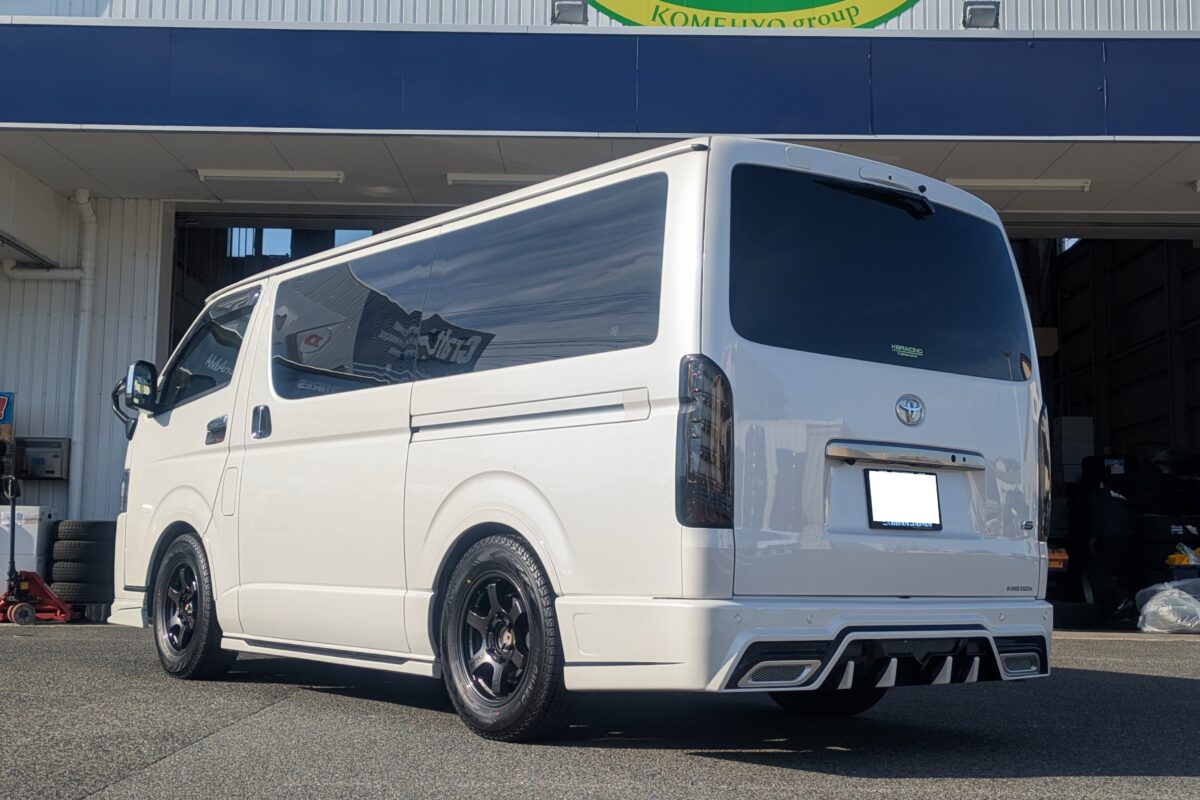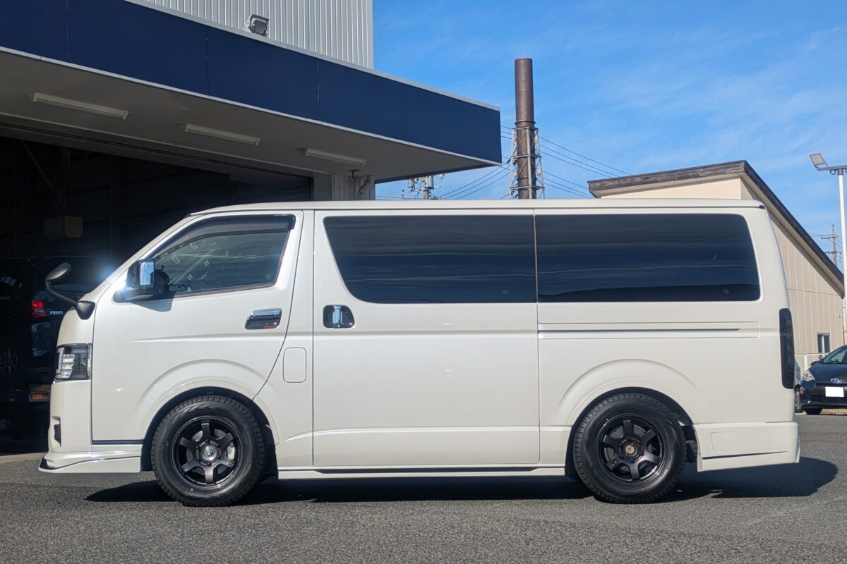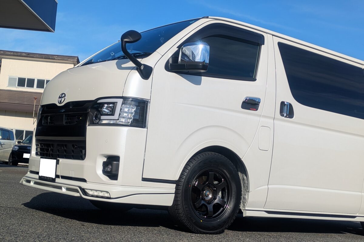 本日のカスタムブログは日本の道を支える万能選手、ハイエースのタイヤ&ホイール交換をご紹介します。