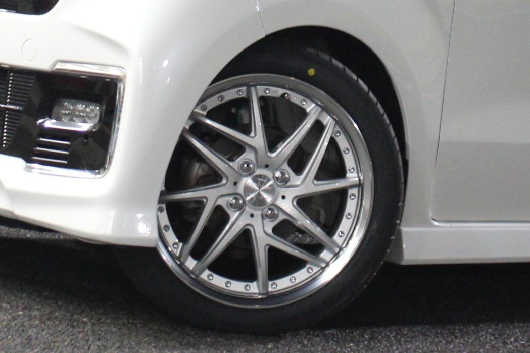 選ばれたホイールは、WORKのリザルタード・メッシュ2。多くの軽用ホイールが1ピース構造である中あえて贅沢な2ピースを選択。