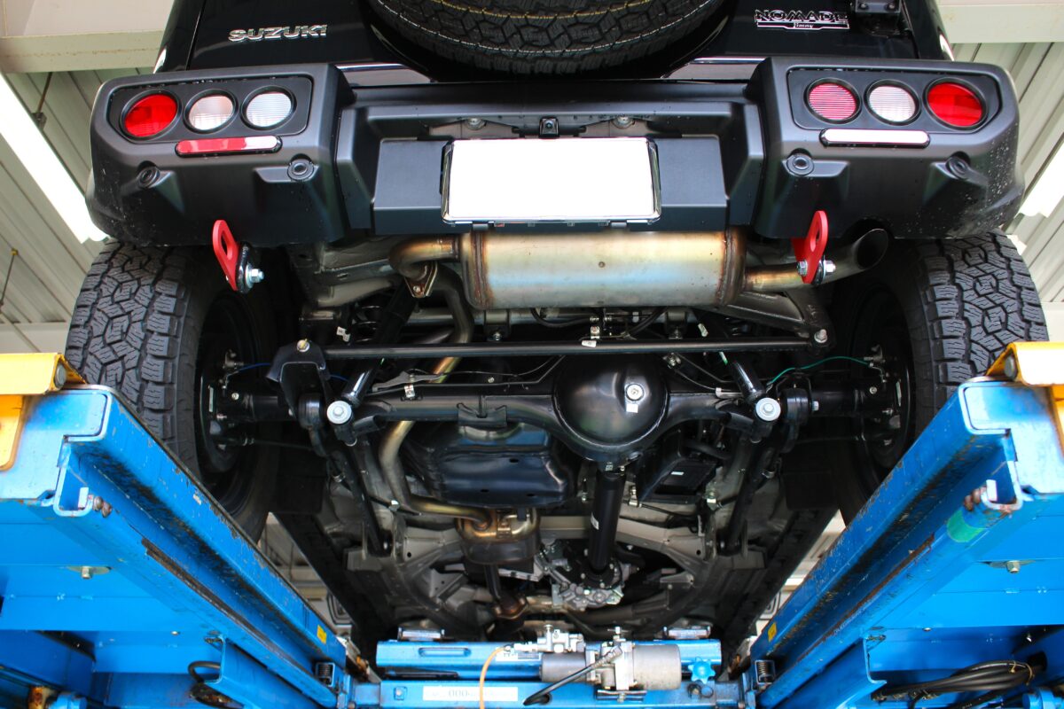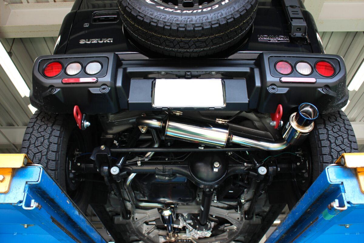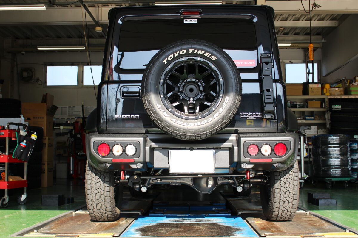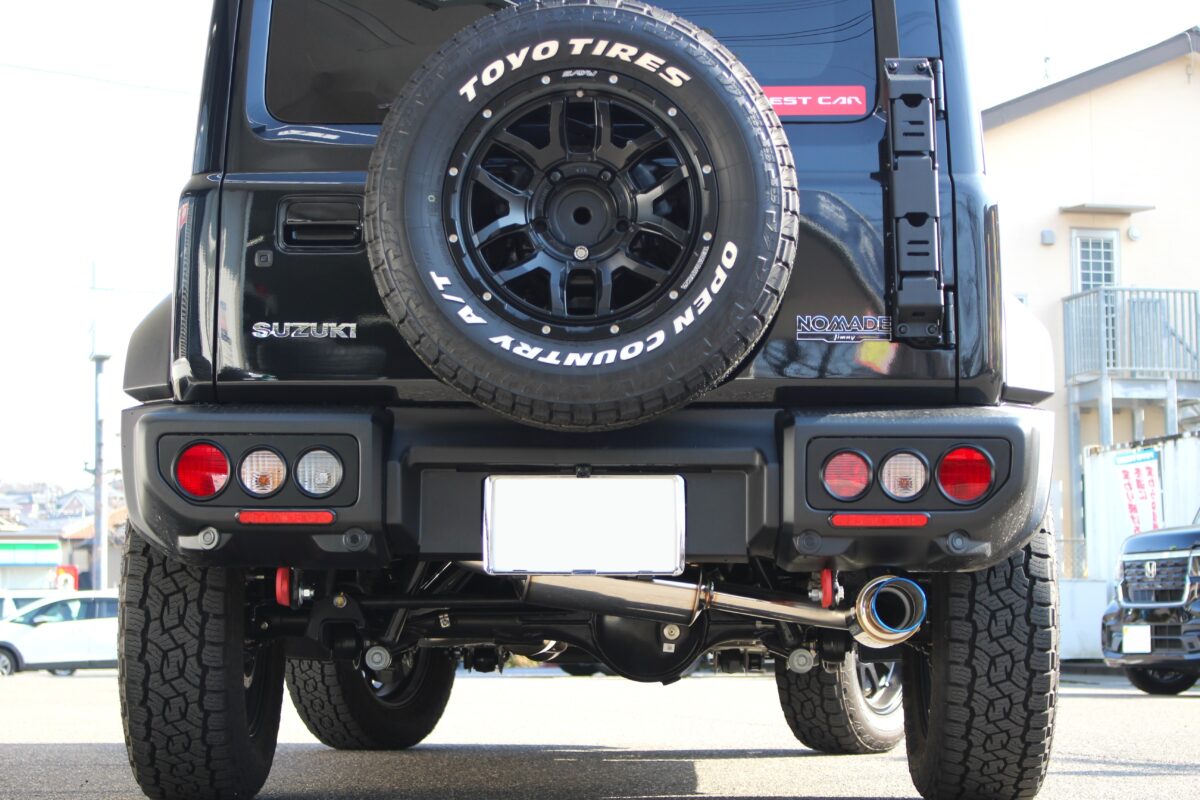 ジムニーノマドの持つアグレッシブなスタイルに、さらにカスタム感が加わり迫力満点のリアビューへ!