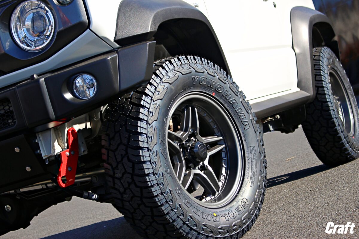 JB64ジムニーに人気のジオランダーAT G015を装着!   こんにちは。 クラフト一宮店の赤池です。 この度JB64ジムニーのタイヤ交換を ご用命いただきましたのでご紹介していきます。 取り付けていくタイヤは、 ヨコハマ ジオランダーAT。   TOYO オープンカントリーと並んで 人気のホワイトレターのタイヤです。 今回ご指名頂いたヨコハマの ジオランダーAT G015はタフな耐久性に加え、 ウェット性能がとても高い安全重視なタイヤとなっています。   更には従来に比べスノー性能も向上。 オンロードはもちろんのこと 悪路にも強いタイヤとなっています。 タイヤのご用命は タイヤショップのクラフトにお任せください。 各国産ブランドはもちろん、 海外メーカーのタイヤも豊富に取り揃えております。 バランスよくカッコいいジムニー完成です! モノトーンでまとめつつ、 ナットで個性を出していく仕様。   オーナー様、 この度はご依頼いただき有難うございました!   タイヤで少しでも悩まれるようでしたら お気軽にご相談くださいませ。 ではでは、クラフト一宮店でした。
