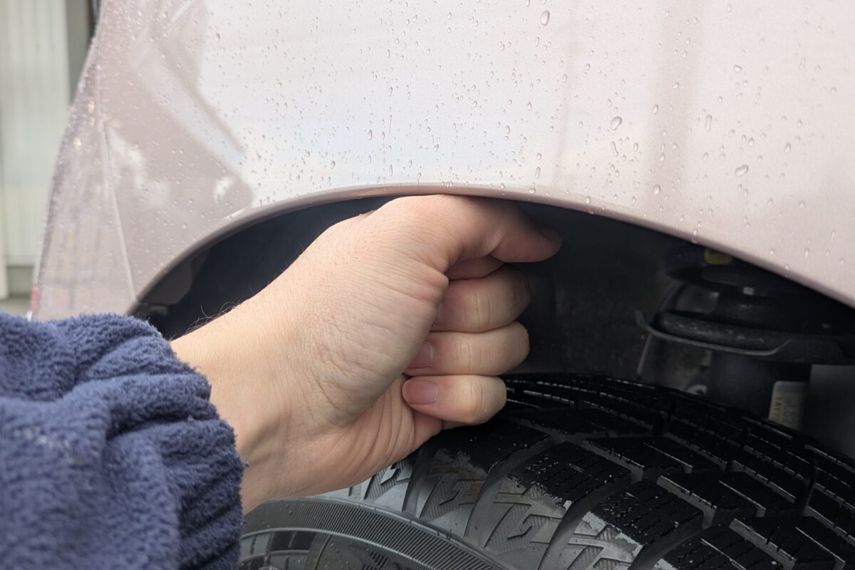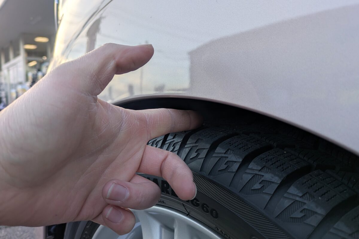 車高調装着前のフロントフェンダークリアランスは拳が丸々1つ分入ります。