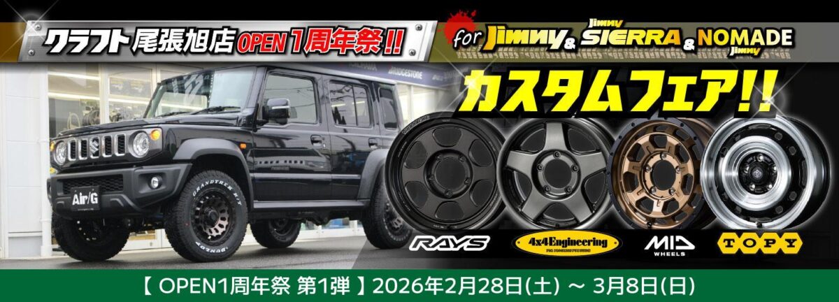 ■【JLラングラー】背面のこだわり!ジェップセン MJCR#216 × ジオランダーM/T G003で魅せる! ラングラーといえば、タイヤホイール選びでその車の「キャラクター」がガラリと変わる一台。 今回は、こだわりのホイールとM/Tタイヤ、そしてラングラーならではの「背面タイヤ」まで含めたコンプリートな内容でお届けします! 皆様こんにちは!アーバンオフクラフト鈴鹿店の森です! 本日は、オフロードカスタムの王道「ジープ JL型ラングラー」のご紹介です。 ■JEPPESEN  MJCR#216 お選びいただいたホイールは、ラングラーオーナーから絶大な支持を受ける「ジェップセン MJCR#216」。 機能美溢れるデザインとなっており、ブレーキ冷却まで考慮された機能的なデザインは、ストリートからオフロードまで隙のない足元を演出してくれます。 ホイールカラーは「フラットブラック/TMC」を選択。 艶を抑えた質感が、ラングラーの無骨なボディラインと最高の相性を見せます。 ■YOKOHAMA GEOLANDER M/T G003 組み合わせるタイヤは、ヨコハマタイヤの「ジオランダーM/T G003」。 この圧倒的なブロックパターン! 見た目のインパクトはもちろんですが、オフロードでの走破性は折り紙付き。 【SIDE/BEFORE】 【SIDE/AFTER】 【BEFORE】 【AFTER】 ■WHEEL ジェップセン MJCR#216 8.0J-17インチ 5/127 ■COLOR フラットブラック/TMC ■TIRE ヨコハマ ジオランダーM/T G003 ■SIZE 285/70R17   装着完了! MJCR#216とジオランダーM/Tの力強さが融合し、純正とは比較にならないほどの「野生味」と「高級感」が同居する一台に仕上がりました。 ラングラーのカスタムで外せないのが「背面タイヤ」の交換です。 今回はしっかり5本セットでご用意させていただきました! 後ろ姿の迫力がまるで違いますね(^v^*) 追い越していくクルマからも、このゴツゴツとしたG003のサイドウォールがバッチリ! これぞラングラーカスタムの醍醐味です! そして、今回のカスタムを実現するにあたって、大きな味方となったのがクラフト自慢の「買取・下取りシステム」です。 外したばかりの純正タイヤ・ホイールセットを、今回も全力の高価買取をさせていただきました! 「新しいホイールが欲しいけど、純正セットの置き場に困る…」 「少しでもカスタム費用を抑えたい!」 そんな皆様! 諦める前にぜひ一度当店にご相談ください。 タイヤホイール専門店だからこそできる納得の査定額で、あなたの理想のスタイルを応援します! さらに今なら買取・下取り時の楽天ポイントが「5倍」のキャンペーン中です! 皆様のご来店をお待ちしております<(_ _)> アーバンオフクラフト鈴鹿店でした! 【開催中のイベント】 【次回開催予定イベント】 管理番号:0222601121010