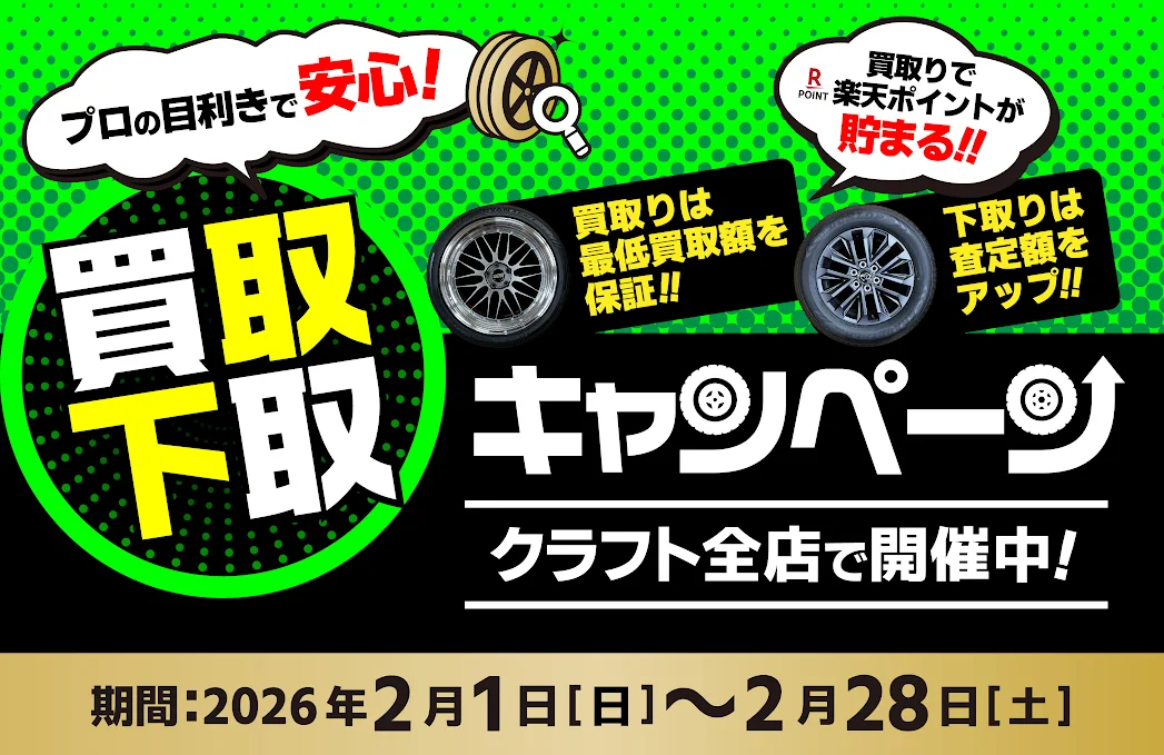ただいまクラフト全店で2月28日(土)まで『買取・下取キャンペーン』を開催中です。