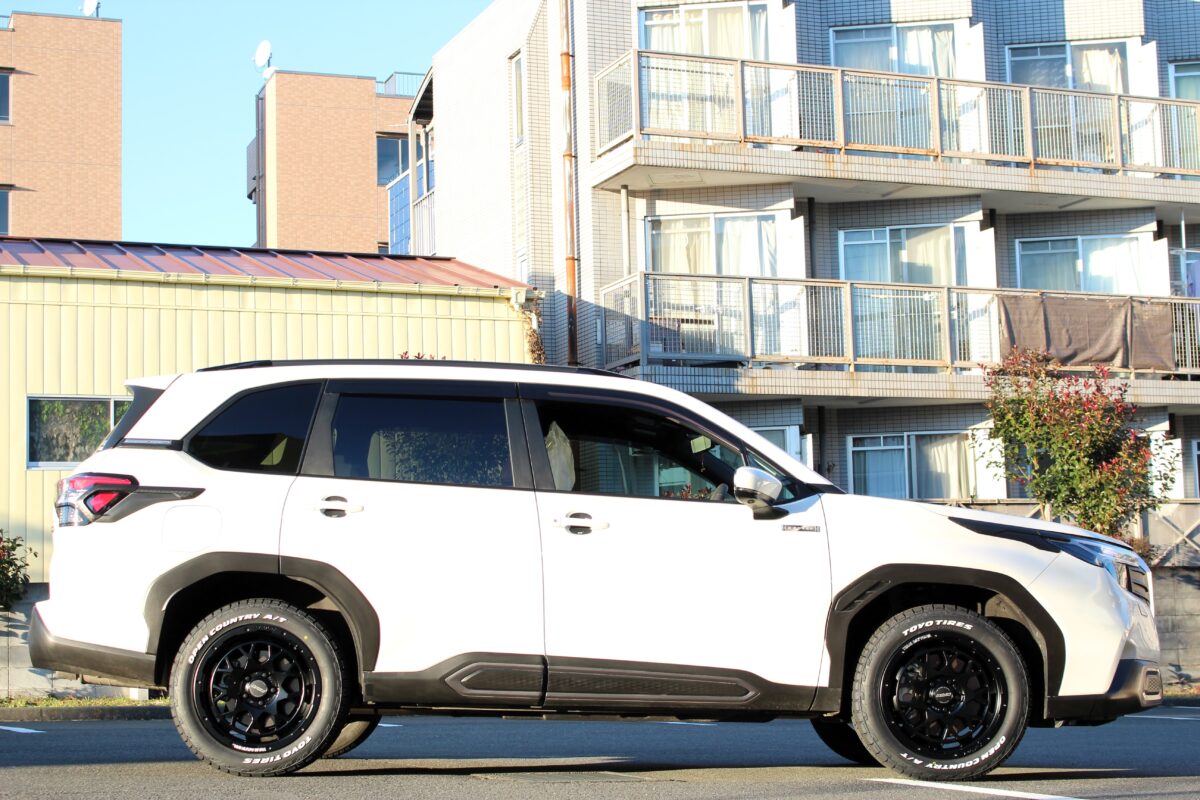 新型フォレスターも今までのモデルより都会的な顔つきになっていますので、バランスよく装着出来ています。