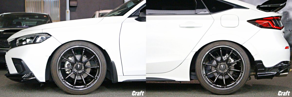 まず、シビックHB FL1 に9.5Jを履かせる為には、上の画像のよう ローダウン を行う必要があります。