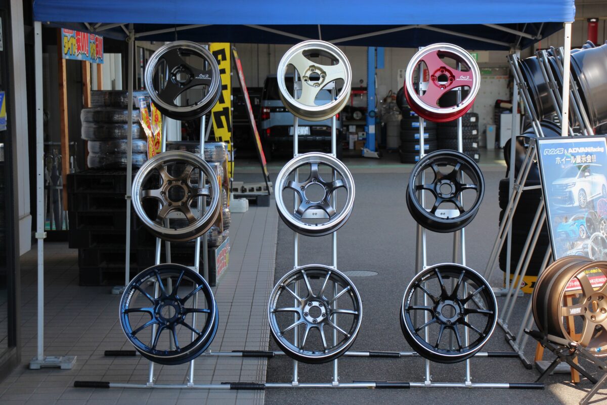 RAYS12本・ADVAN9本をお借りして展示中!!!
