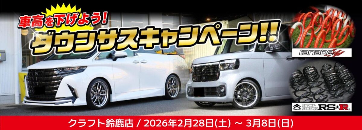 対象メーカーは「タナベ」、「RSR」のダウンサスの2大メーカーとなっております!
