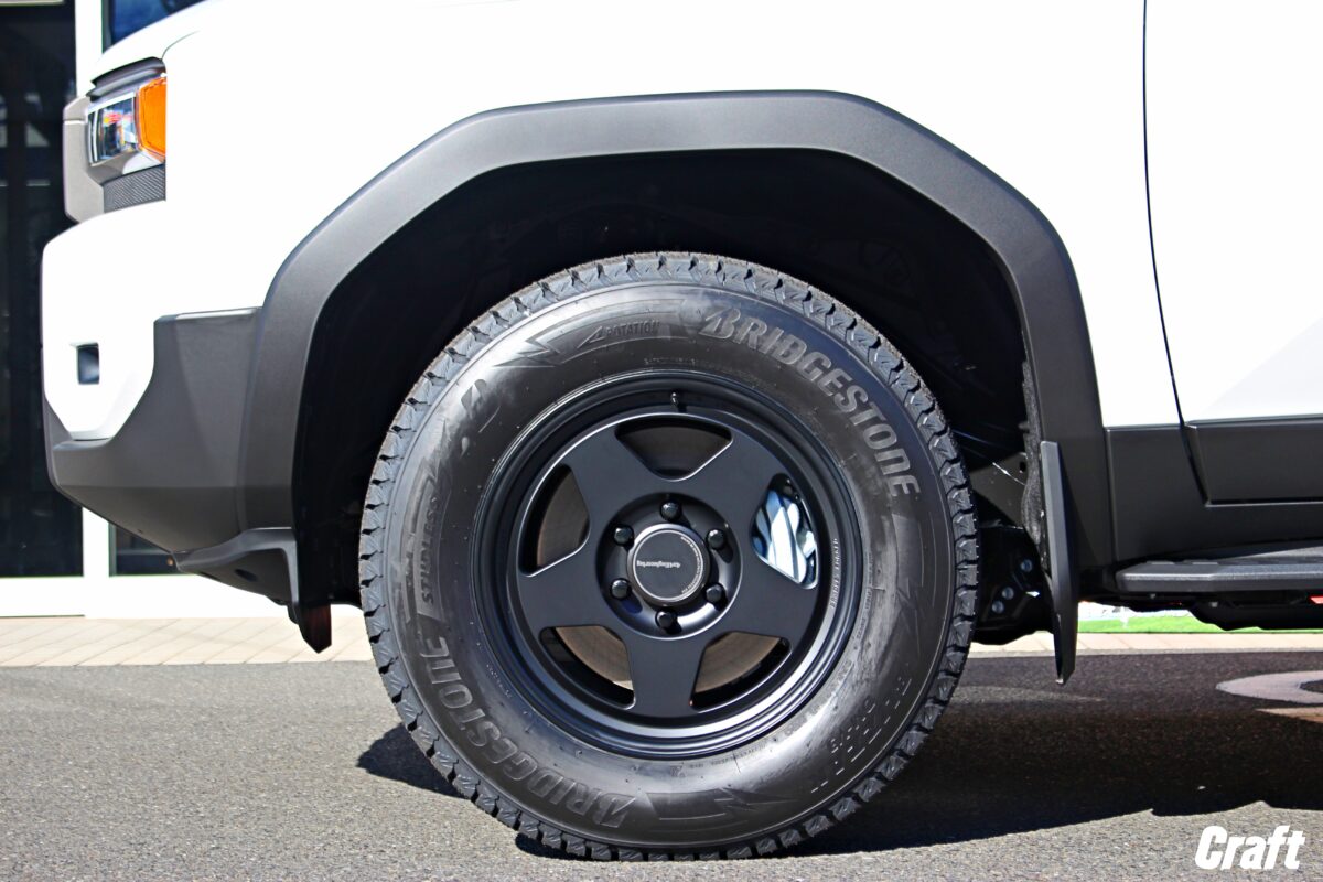 納車間もないおクルマなので、純正タイヤ・ホイールを装着しているT様・ランクル ニーゴーマル。
