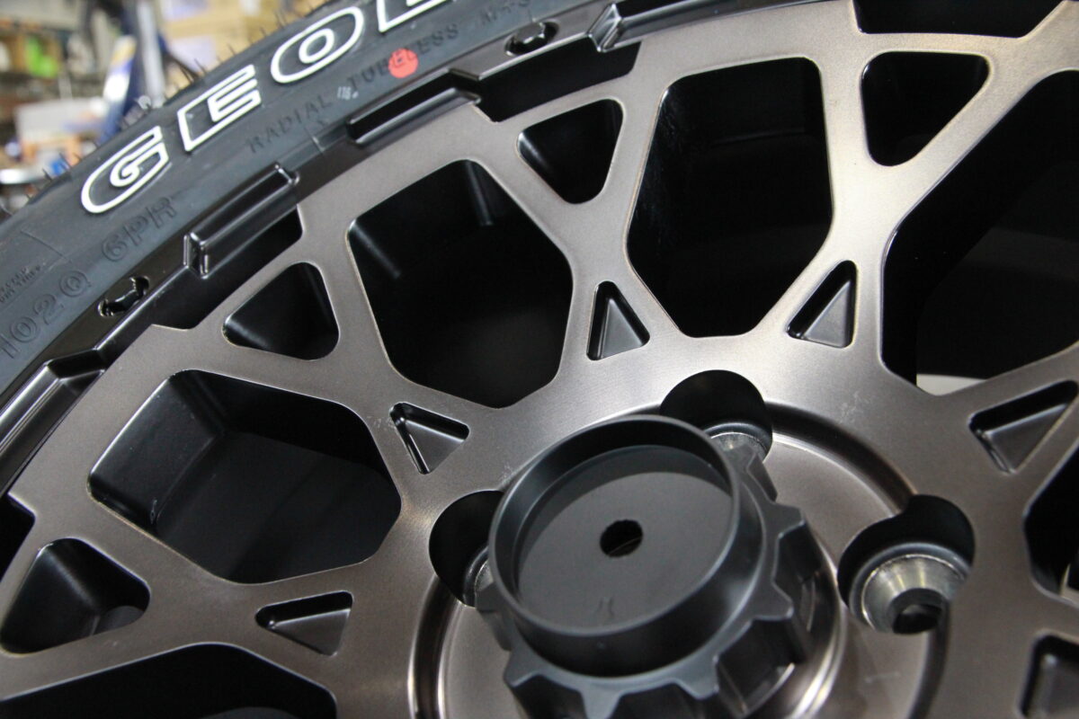 JAOSのパーツ満載のゴツイお車の足元もボディの迫力に負けないぐらいの仕上がりになりました。