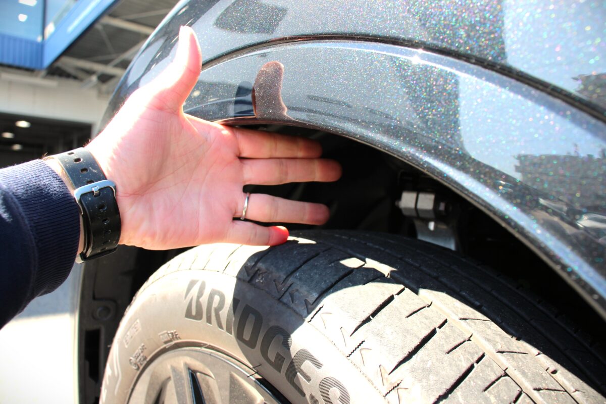 タイヤとフェンダーのクリアランスが広くなるとボディが浮いて見える要因となるわけです。