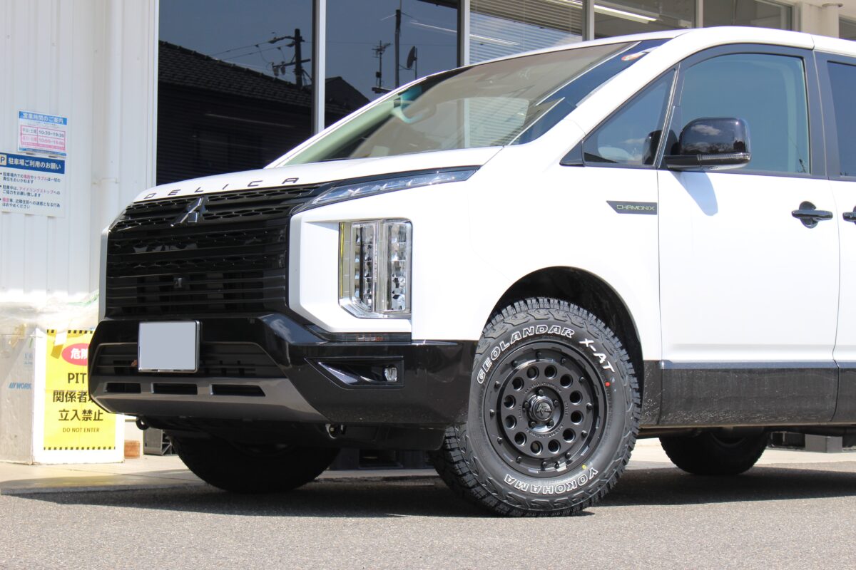 ■【新型デリカD:5】ゴツく、よりゴツく。デルタフォース オーバーランダーとカンサスで仕上げるオフスタイル! 2026年も春本番。 新型デリカD:5も少しずつ街中で見かけるようになりました。 キャンプに林道、最高のシーズンがやってきましたね! 皆様こんにちは!アーバンオフクラフト鈴鹿店の森です! 本日は、そんなアウトドアシーンを最高に熱くする一台「ミツビシ 新型デリカD:5」のトータルカスタムをご紹介いたします。 フロントバンパー、オーバーフェンダーが前型よりも大型でゴツい新型デリカD:5。 これはもうマッシヴにカスタムするしかありませんね! ■4×4エンジニアリング カントリーサスペンションキット まずは、デリカカスタムの要となる足回りから。 ヨンク界の老舗、4×4エンジニアリングの通称「カンサス」をインストールしました! ただ車高を上げるだけでなく、低速域から高速域まで、デリカ特有のふらつきを抑えた"しなやかな乗り心地"が魅力。 荷物を積んだ際や多人数乗車時も考慮されたセッティングで、リフトアップによる「腰高感」を「安心感」へと変えてくれます。 ■アムテックス EZカム デリカのリフトアップで忘れてはいけないのが、こちらの「EZカム」。 キャンバーボルトと呼ばれる偏心ボルトで、リフトアップした際に起き上がっていくキャンバー角を基準値へと戻すために使用します。 ■DELTA FORCE OVERLANDER ホイールは、大人気「デルタフォース」の「オーバーランダー」をチョイス! 今回選んだカラーは、深みのある質感が特徴の「マットスモークポリッシュ」。 ポリッシュ部分にスモークをかけることで、キラリと光りつつも、マットな質感が全体をグッと引き締めます。 名作「オーバル」からさらにタフに進化したデザインは、新型デリカのモダンなフロントマスクにも負けない圧倒的な存在感を放ちます。 しっかり反りこんだコンケイブが人気の秘訣です(^v^*) ■BFGoodrich All-Terrain T/A KO3 そして、組み合わせるタイヤは「KO3」です! アグレッシブなサイドのデザインが、デルタフォースの無骨な造形と共鳴し、最強の足元を演出してくれます。 【SIDE/before】 【SIDE/after】 【before】 【after】 ■WHEEL デルタフォース オーバーランダー 7.0J-16インチ 5/114 ■COLOR マットスモークポリッシュ ■TIRE BFグッドリッチ オールテレーン KO3 ■SIZE 235/70R16 ■SUS 4×4エンジニアリング カントリーサスペンションキット ■OP アムテックス EZカム   カンサスによるリフトアップと、オーバーランダー×KO3の組み合わせ(^v^*) 新型デリカが持つポテンシャルを120%引き出した、隙のない一台に仕上がりました! 「自分のデリカもここまでカッコよくしたい!」というオーナー様、ぜひアーバンオフクラフト鈴鹿店にご相談ください! オーナー様、この度は当店をご利用いただき誠にありがとうございました! 最強の足回りで、これからの冒険を存分に楽しんでくださいね! アーバンオフクラフト鈴鹿店でした! 【開催中のイベント】 管理番号:0222603301015