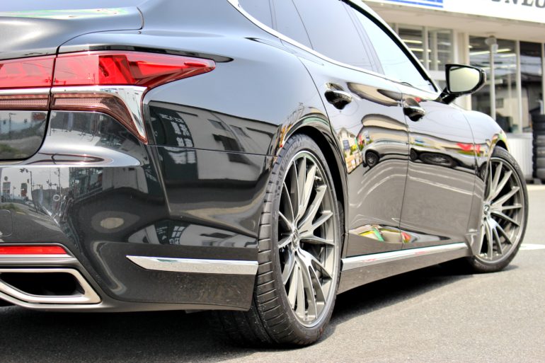 現行のレクサスLSにピッタリのサイズ設定がございますのでこの様にキレイに装着する事が出来ます。