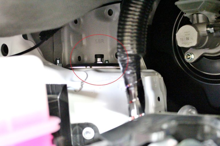 僕がエンジンルームに手を伸ばしていますが、覗いている先はココ