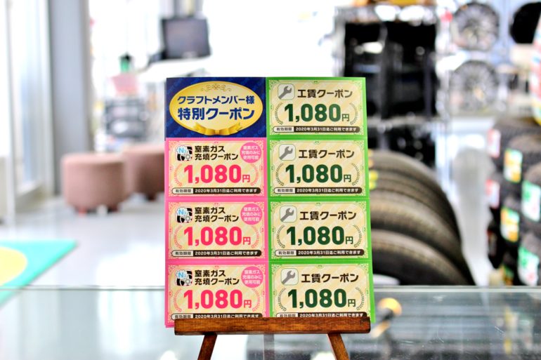 クラフトメンバーの皆様に発券しているクーポン券は2種類ございます。