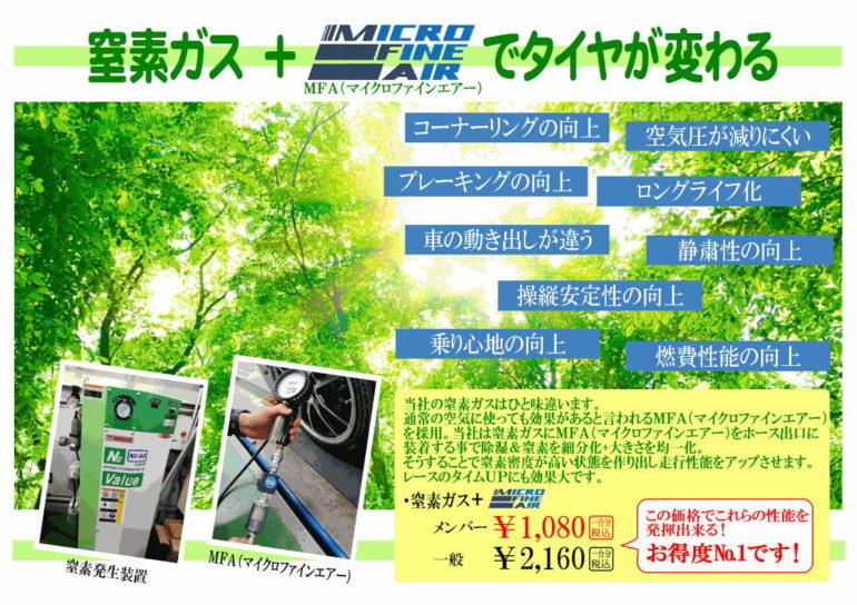 クラフトメンバー会員の皆様、タイヤのエアをチッ素に交換するだけで上記の様な効果が期待出来ますよぉ~