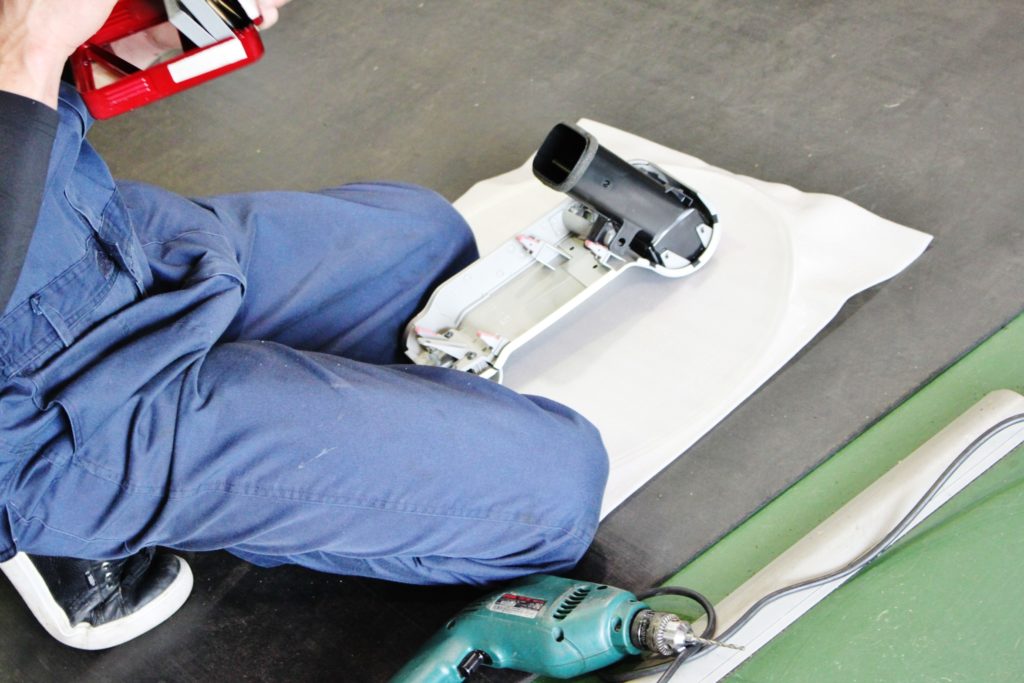 マスキングを駆使して位置決めし穴あけ加工。