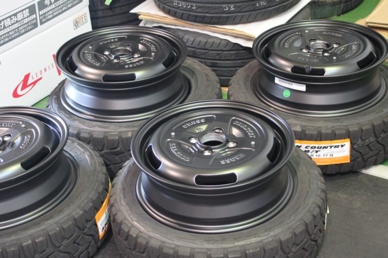 今回は15インチと1インチアップ+タイヤもゴツゴツ系タイプに変更。
