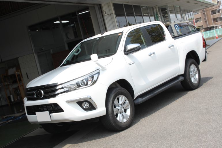 積載物、牽引の関係でフロント側が下がってしまいます。