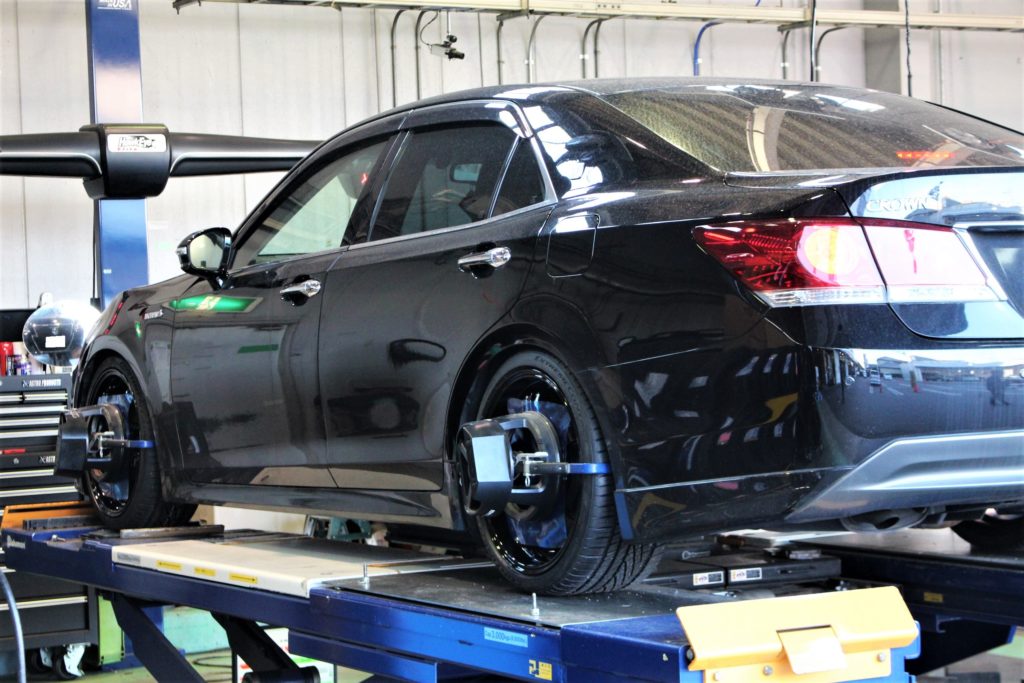 車高調装着後、車高が決まり次第アライメント作業へ。