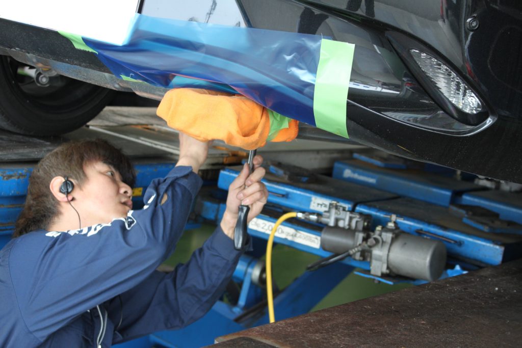 マフラーハンガーの位置、ズレ、ネジ一つ