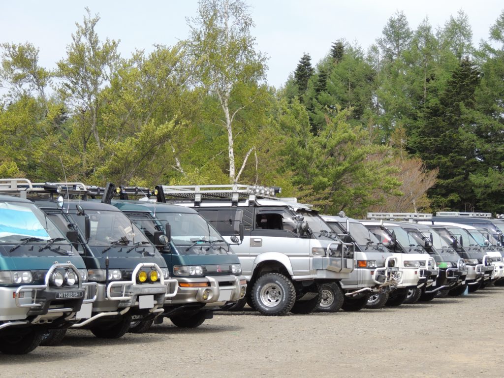 駐車場もスターデリカ、スペースギア、新旧デリカD5など歴代のデリカも勢ぞろい。