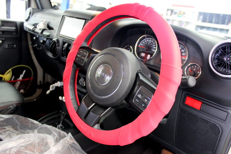 こちらはオーダー時にお買い上げいただいたクリムソンのハンドルカバー。
