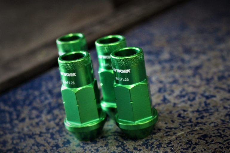 ディスク面がこれほど派手なカラーですと、当然ナットにも拘って頂きました。WORKさんのレーシングナットから、あえてのグリーンをチョイス!