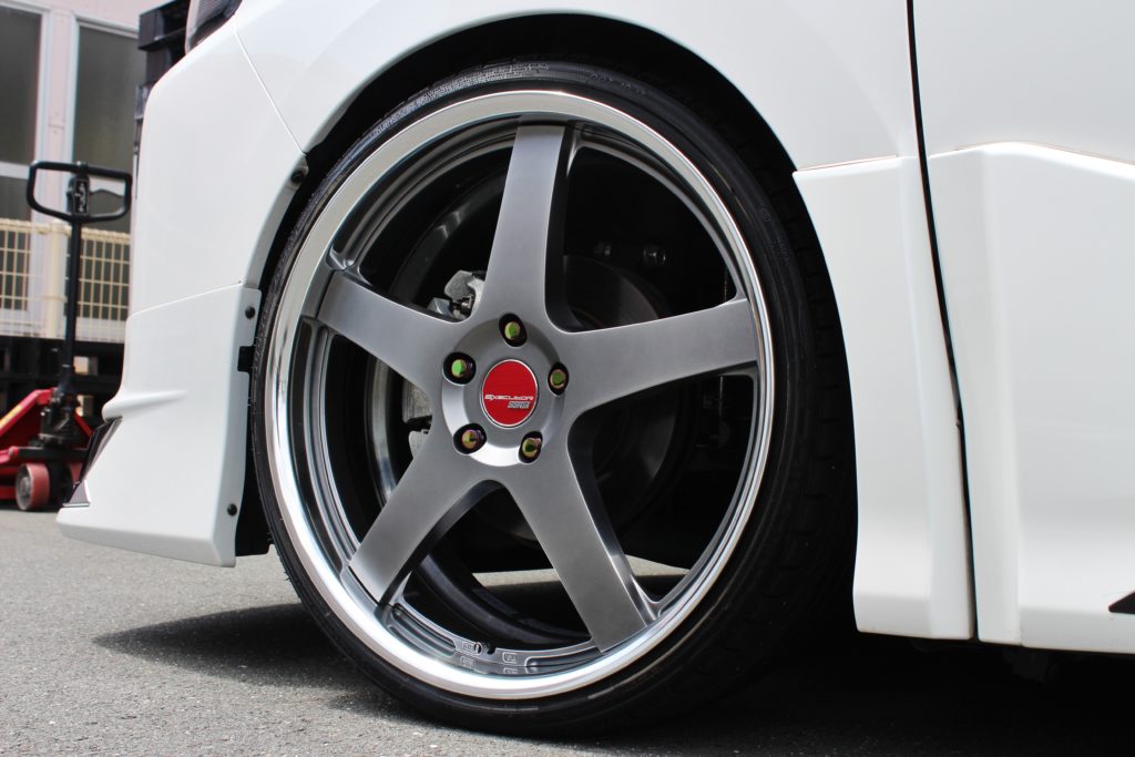 上品さを醸し出すフラットチタンカラーにアクセントとしてレッドのセンターキャップを組み合わせ