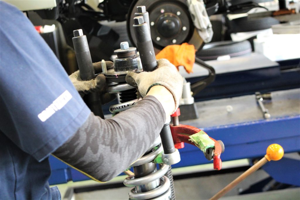 フロントは車高調整機能付きなので、範囲内で希望車高にセット可能。