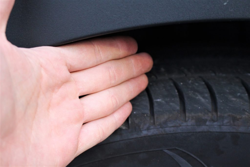 ノーマル車高のフェンダークリアランスは約指3本から4本弱。