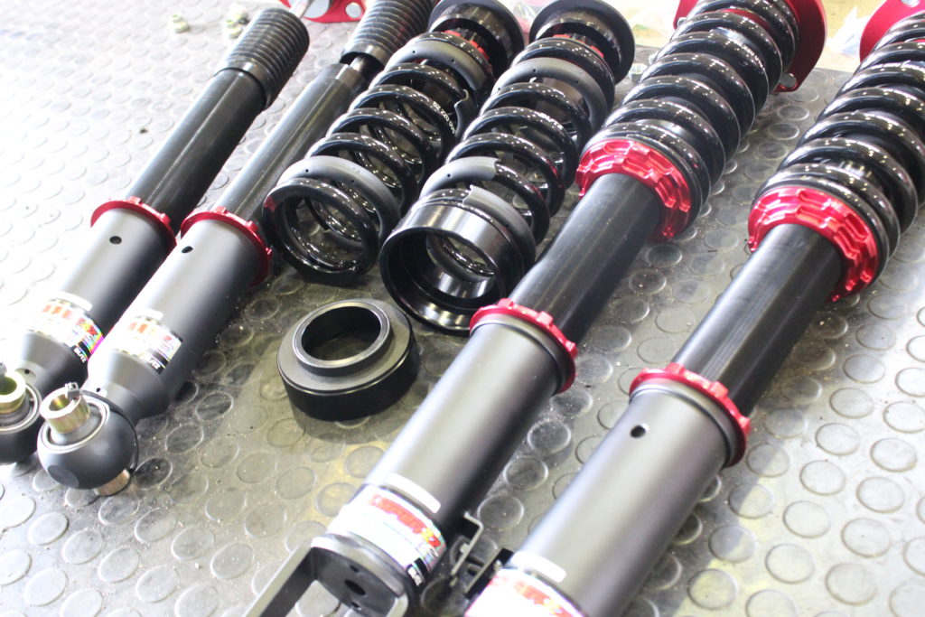 フルタップ式の減衰調整式モデルで人気の車高調をお取り付け。