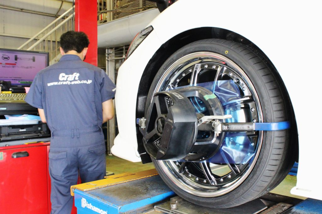 車高調の取り付け後は、アライメントの測定&調整も。