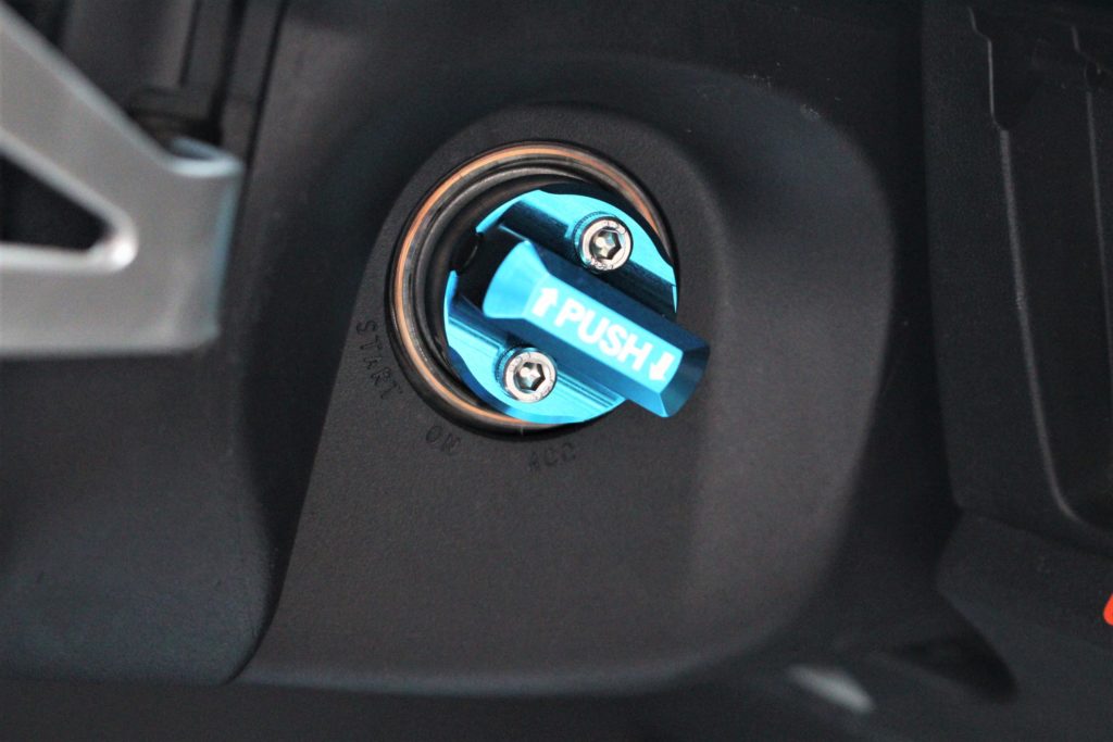 ジュラルミンブロックから削り出されたイグニッションスイッチカバー。