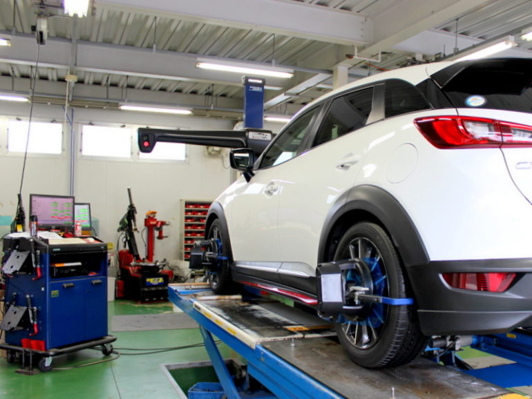 当店アライメントなど全てのローダウン施工は自社で行っていますので、