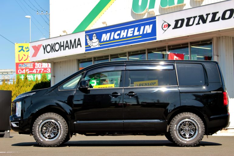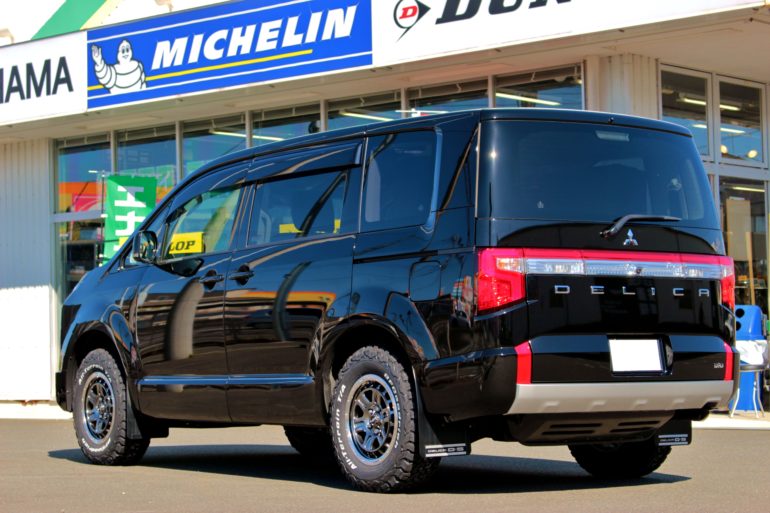 デリカD:5は1BOXタイプのおクルマだけに車高が高めに設定してあるので、ホイール&タイヤを交換するだけでオフロード感が漂ってきますっ♫♫