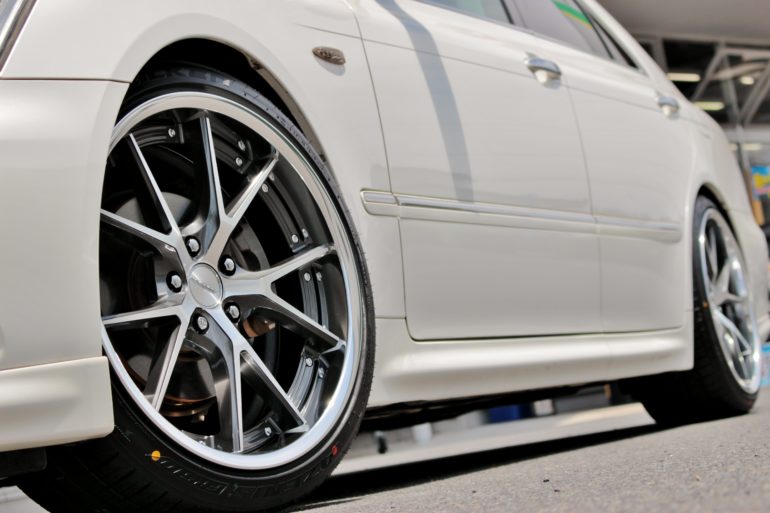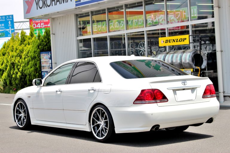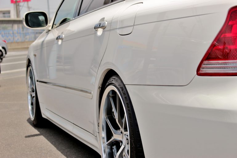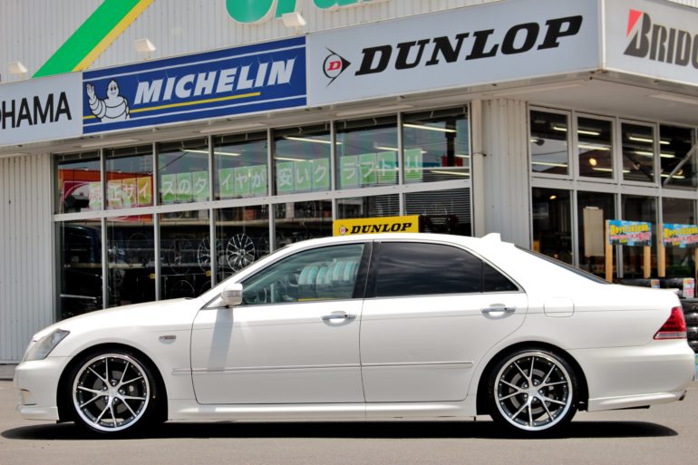 特にクラウンの様にフロントのインナー側があまり広くないおクルマの場合、ホイールのインナーリムがボディーに接触して装着出来なくなる事もあります。汗