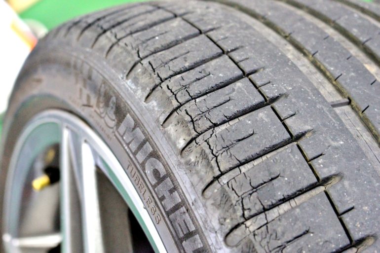 溝は残っているものの、ヒビ割れが多くゴムの劣化が進んでいる状態でした!!