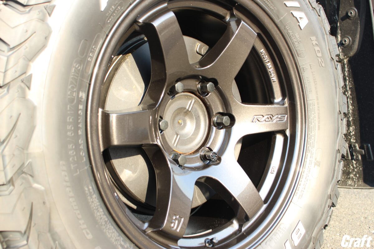 ワイドフェンダーを装着しているなら、それに見合ったホイールサイズがオススメ!! 本日は出ヅラにも拘り 「 RAYS DAYTONA M8 」 で仕上げましたよ~✨     いつもありがとうございます、クラフト厚木店・佐藤です!!   本日のご紹介はA様・HILUX GRスポーツ。   すでにリフトアップスプリングで前下がりを補正しており、ホイール交換を行う準備はバッチリ!!   そんな訳でタイヤサイズ&ホイールインセットを厳選し仕上げましたよぉ~♬♬     ご購入いただいたホイールは 「 RAYS TEAM DAYTONA M8 」   通常のM8とは違う特殊なカラーで仕上げられている M8 xB Edition 。   本日装着しているのは セミグロスアームズグレー / E-pro Coat(G4L) となります!!     RAYS DAYTONAシリーズには様々なデザインが用意されていますが、このM8はちょっと攻めたサイズ設定となっているんです!!   ここで言う攻めたサイズとは 「HILUX 」 が装着するであろう17インチ 6Hの事。   従来のDAYTONAシリーズの場合、サイズ設定は 「 8.0J インセット+20 」 となっていました。   ですが本日装着の DAYTONA M8 は 「 8.5J 」 のリム幅がベースとなり、インセットも 「 +10 / ±0 」 となかなか攻めたサイズ設定になっているんです!!   ちなみに、このインセットと言うのは数字が小さくなればなるほどホイールが外にオフセットされる仕組み。     そして、インセットの数値が少ない方が最近の流行でもある コンケイブ を強調させやすくなるんです!!   こうして見てもなかなかのコンケイブスタイルとなっていますよねっ♬♬   ちなみに、この攻めたサイズでもあるM8、ナローボディーのHILUXや150プラドに装着するとどうなるのでしょうか。。。     その答えはなかなか際どい仕上がりとなります!!   150プラドに装着する場合 「 265/70-17 」 を組合わせた場合にタイヤの横っ腹がフェンダーから少し見える位の仕上がりとなります。   現状の保安基準では、タイヤの突出は一定の数値までOKとされているのでギリギリセーフでしょう。   しかしながら、HILUXの場合は貨物車(4ナンバー)となっており、タイヤでも突出してはいけないと言うルールとなっているので保安基準をクリアするのは難しいかも知れません。。。     8交点メッシュ、そしてビードロック風なデザインを採用しているDAYTONA M8。   そんなデザインを更に強調させるのが E-pro Coat にてリム部をブラックに仕上げている事!!   それによりリム部に別部品が装着されているように見えますよねっ♬♬   ちなみに、HILUXはフェンダーアーチがやや狭いおクルマ。   なので、タイヤサイズを変更するのがとても難しいんですよね。。。   A様・HILUX GRスポーツはリフトアップスプリングでリフトアップを行っておりましたが、1.5インチ程のUP量である事からタイヤサイズは 「 265/70-17 」 を選択!!   それでもインナーフェンダーとのクリアランスはゼロに等しかったんです。汗   もちろん、安心して乗っていただけるようにインナーフェンダーの1部に手を加えておきましたっ 👍     それでは最後に気になる出ヅラをチェックしてみましょう!!     なかなかキレイな出ヅラですよねっ 👍   先程も記載しましたが、HILUXはタイヤの突出も許されないおクルマ。   装着後に糸を垂らしてチェックしてみましたが問題ナシ!!   干渉対策や保安基準対策もバッチリなHILUX GRスポーツが完成しましたよぉ~✨   これから愛車のカスタムをお考えのオーナー様、クラフト厚木店にぜひお任せ下さいね~♬♬     A様、この度はご利用誠にありがとうございました!!   ご相談当初から狙っていたホイールは DAYTONA M8 でしたが、カラーでお悩みでしたよね。。。   ですが、最終的に選んでいただいた セミグロスアームズグレー(G4L) は大正解だったのではないでしょうか!?   その後、例の送り迎えでは注目の的となりましたかね??笑   それではまたのご利用よろしくお願いしま~す☆☆   管理番号:0412505011005