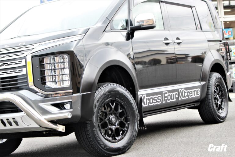 S様・デリカD:5ですが、見ての通りオーバーフェンダーも装着しワイドなおクルマへと仕上げてあります。