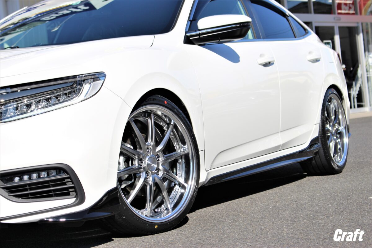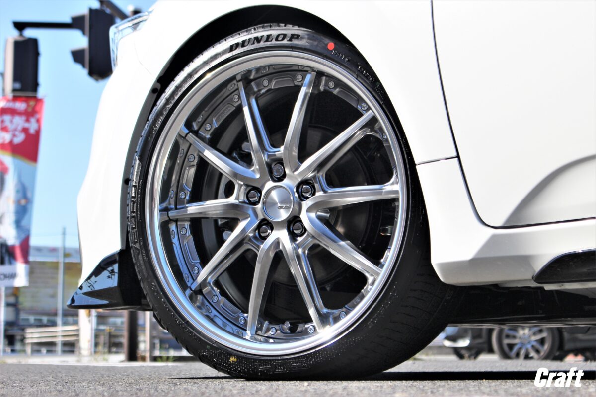 ローダウン後に実車計測を行いツライチサイズを選定。