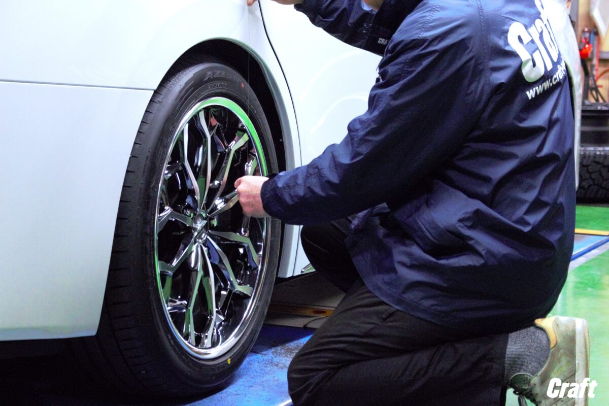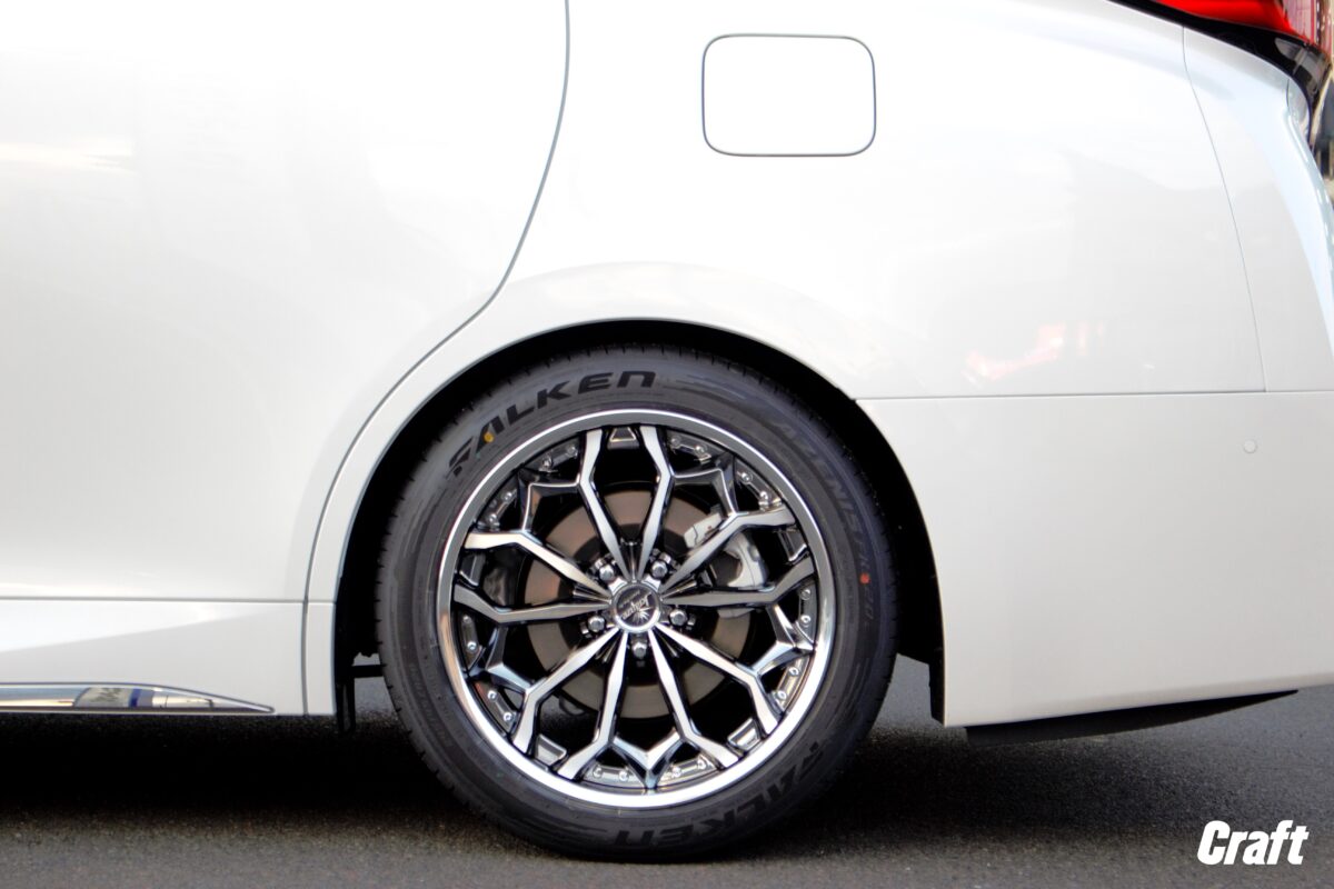 本日ご紹介のヴェルファイアはTEIN車高調にてローダウンを行いましたので、ノーマル車高の状態より装着出来るホイールサイズにゆとりが出ます。