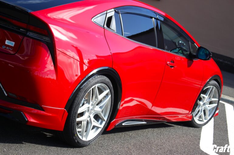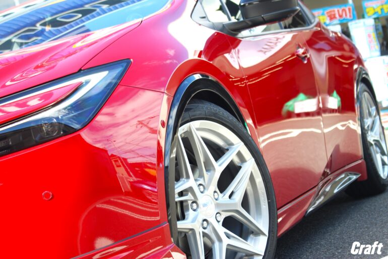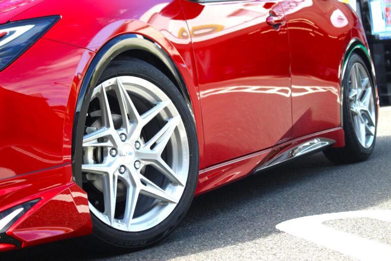 車種や選ぶホイールによっては1ピースホイールでもなかなかのツライチ仕様に仕上げる事が出来る場合もあります。