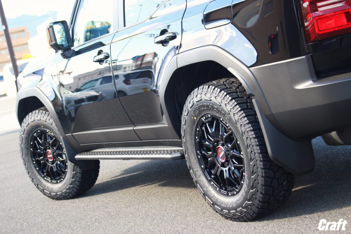 こんにちはクラフト相模原店です! 今回ご紹介するのはランクル250のリフトアップ&タイヤホイール交換。 トータルオフカスタムさせていただきました!   リフトアップはJAOS リフトアップスプリングを装着。 フロント約1.5インチ、リア約1インチアップのスプリングとなります。 前下がりのフォルムを補正しつつ全体的に車高の上がるバランスの良いスタイルです!   タイヤホイールはレイズ ボルク ZE40Xを装着。 肉抜きによる軽量や強度、剛性を考慮された9本スポークホイールでございます。 センターパートはラウンドがかったディッシュデザインで4WDらしさが演出されております!   カラーはブラストブラック2をチョイス。 マット質感で無骨な質感がより引き立ちます!   タイヤはヨコハマ ジオランダー X-AT G016を装着。 純正外径と比べると約55mm大きくなる285/70-18を組み合わせました。 ここまでワイドになるとオーバーフェンダーは必須となります。 そしてここまで大きい外径ですとリフトアップしてこそのバランス良いフォルムになります!   こちらと同じような仕様に仕上げたい方に向けて簡単に概要をまとめますと、 ・タイヤホイールをフェンダー内に収めるためオーバーフェンダーの装着が必要 ・バランスよく装着するならリフトアップ同時施工がオススメ と言った形でございます。   当店では2026年3月1日(日)~30日(月)の期間で リフトアップキャンペーンを開催しております! 期間中のリフトアップご成約でキャンペーン特価にてご案内させていただきます! タイヤホイールのみならずリフトアップでトータルオフカスタム出来ますので是非当店をご利用くださいませ!   今回のカスタムスペック ホイール:レイズ ボルク ZE40X (F/R)8.5J-18インチ カラー:ブラストブラック2 タイヤ:ヨコハマ ジオランダー X-AT G016 (F/R)285/70R18 サスペンション:JAOS リフトアップスプリング   この度はクラフト相模原店をご利用いただき誠にありがとうございました! ランクル250のカスタムも当店にお任せください!   ランクル250用在庫ホイール一覧はこちら↓↓↓ 相模原店イベント情報はこちら↓↓↓ 管理番号:0422602221009