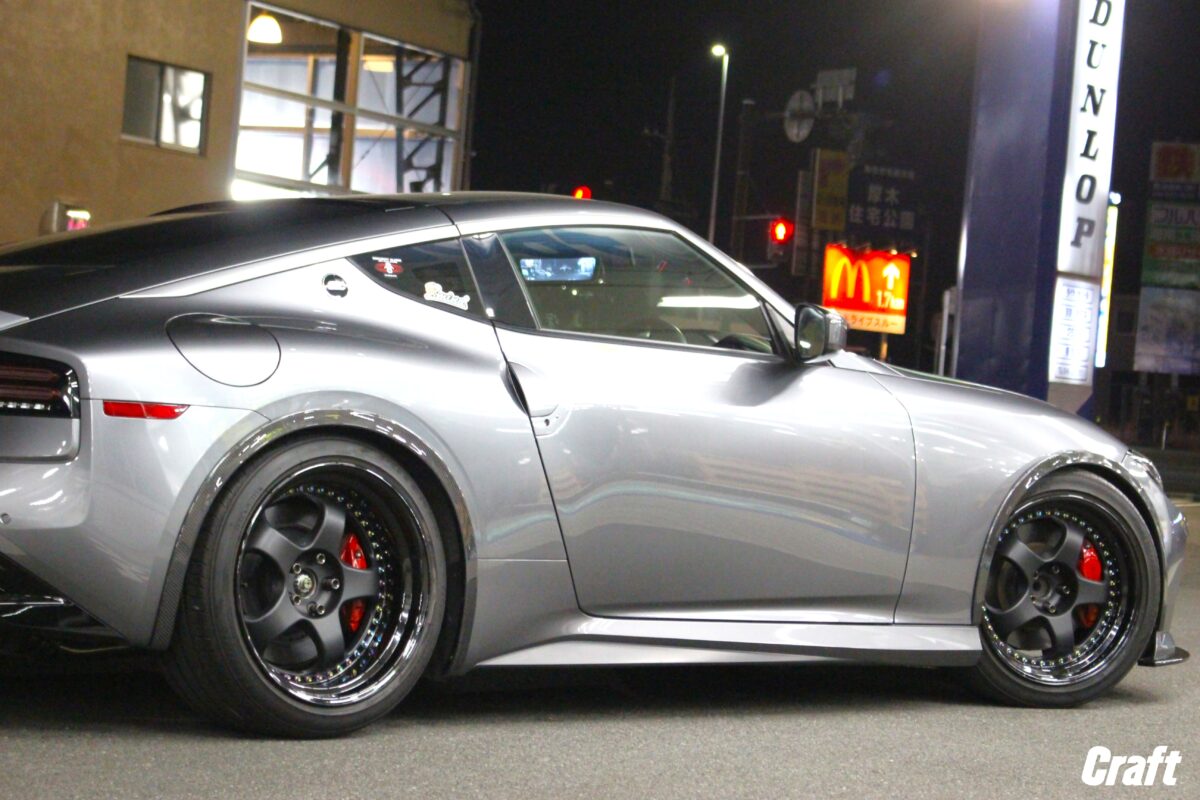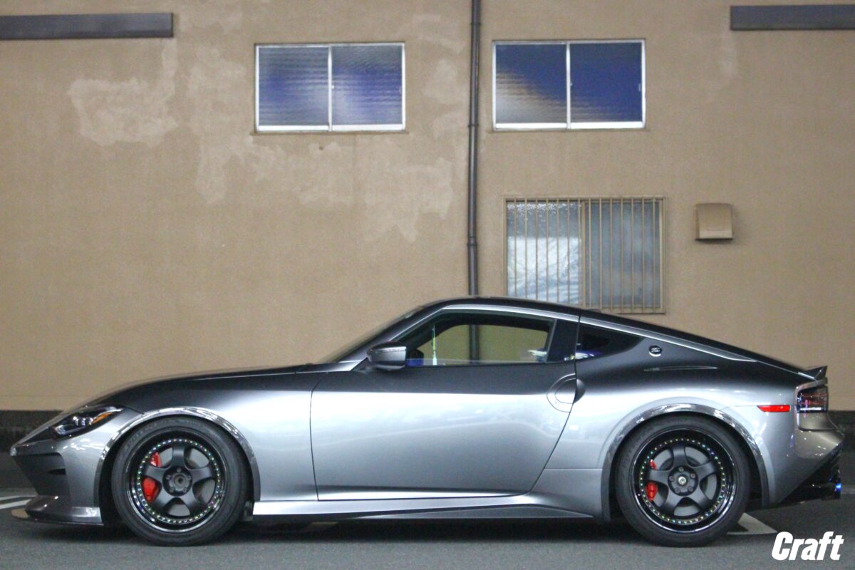 なのでノーマル車高のフェアレディZに比べてリムの深さも稼げる車輛となります。