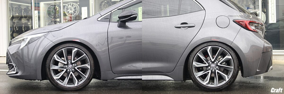 上の画像はご入庫時のカローラスポーツとなりますが、けっこう車高が高いと思いませんか??