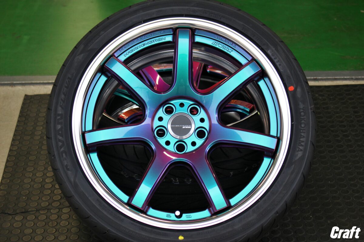 今回のホイールカラーは見る視点によって色が変わる特殊カラー。