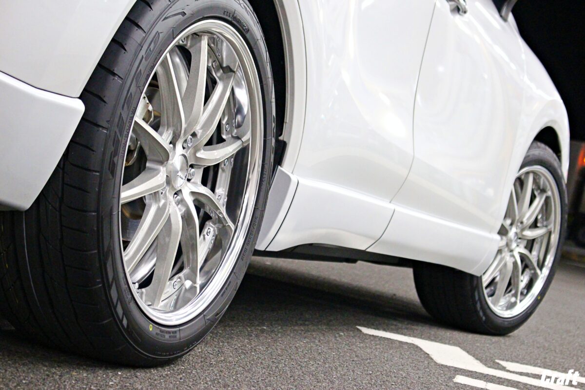 ■80ハリアーを9.5J化!WORK ジーストSTX 21インチ を最速ツライチ履き & ディープコンケイブ! WORKジーストシリーズ(バックレーベル含む)のディープコンケイブって崇高と言いますか… ある一種の特別感があるもの。 決して優しくはないサイズ設定だけに履きこなせばクルマ好きからの羨望の眼差しも( *´艸`) ベース車が持つポテンシャルを引き出しつつ一つ一つのピースが「パチッ」とハマッてこそ実現します。 ご紹介していきましょう!お世話になっております。クラフト鈴鹿店です。 本日ご紹介させていただくのは、次仕様を見据えローダウンを行った80ハリアー(※おさらいはココから) こーしたいからアレを選んでそうする。と言った具合にピースを揃え繋ぎ合わせました。 紙面やWEB上では分かりづらい点を具現化できるのも実店舗の強み。 仮に同銘柄ホイールでも過程の踏み方一つによって仕上がりに差が出ますので、事前準備がキモ。となるワケです。 その過程を踏み手にするのがコチラ… ■WORK ジーストSTX WORK様の2024年新作。ジーストシリーズへ新たに加わったジーストSTX。 ST1やST2が骨太なスポークラインだったのに対しSTXではシャープなメッシュ系デザインを採用。 STEP RIM2段目までスポークが伸びているため、実インチ以上の口径感を得られるのも魅力ですネ! さて、最新作STXでも対応ディスク、サイズ別に"ミドルコンケイブ・ディープコンケイブ"2つの顔が用意されています。 スポークが中央部で激しく屈折する姿こそディープコンケイブの象徴。これが欲しかった! 加えて、前仕様からの大幅なサイズアップを敢行。 9.5J&21インチとしタイヤの引っ張り具合もキレイに見えるよう調整させていただきました。 カンの良い読者様なら「ん?」とお気づきかも??… そう。インナークリアランス。 J数UPにより外側は勿論ですが、内側へも距離感が詰まります。 外ツラをMAXにインセット+J数を計算しつつ内側にどれだけ余裕を持たせられるか?が重要項目。 実車計測でアレコレ計算を行いタイトながらある一定の距離感を確保。 太履き。ってただJ数アゲてエライだろ?ではないのです。 緻密な計算+アイテム選定が効いた上で、初めて成功するもの。 BLITZ車高調を選んだのもこのためなんですよね( *´艸`) 自分が選定したサイズに間違いがないのか?いよいよ答え合わせのお時間。 リフトから徐々に地上へ降ろす瞬間はいつだって緊張します。 長くこのお仕事に携わらさせていただいていますが、この感覚だけはずっと変わらないんですよね。 いざ!全貌公開! WHEEL:WORK ジーストSTX 21インチ(9.5J)ディープコンケイブ COLOR:トランスグレーポリッシュ(TGP) TIRE:ダンロップ ビューロVE304 SUS:BLITZ DAMPER ZZ-R OPTION:WORK ハブカラー ジーストシリーズを代表するカラーと言えば"トランスグレーポリッシュ"。 薄いグレー系クリアが吹かれトーンを抑えた落ち着きあるカラー。 メリハリあるディスクデザインにより陰影感を楽しめます(*^^)v 【side view】 大柄なボディと丈感あるモデリスタエアロなハリアーをベタッと落とすことで、放たれる塊感は必見。 ホイールサイズはマル秘ですが、サイドから見てもディープコンケイブ特有のソリ感を楽しんでいただけます。 前後9.5J・ディープコンケイブ。 このツラ感でローテーションもOK。実用性面もOKです。 タイヤの膨らみ具合やサイズも考慮し銘柄選定を行っているので、 抜け感のないシルエットを全方向から楽しんでいただけます。 選んでいただいたタイヤ銘柄は"ダンロップ ビューロVE304"。 タイヤ内部にサイレントコアと呼ばれる特殊吸音スポンジ搭載+パターンデザインから静粛性を重視した一本。 プレミアムSUVの室内環境を重視しつつスタイルアップを求める際にオススメ。 ショルダーもスッキリしているので、見ためも美しい。 最新作をツライチ履きで。 オーナー様待望のディープコンケイブなジーストSTX。 仕上がりにお喜びいただけました。 マフラー・車高調・NEWセット…と全て当店へのご依頼誠にありがとうございます。 また、増し締めや空気圧点検等でもお待ちしておりますので、お気軽にお申し付けください。   WORKホイールはWORKホイール正規取扱店のクラフト鈴鹿店まで。 皆様からのお問い合わせもお待ちしております。   【2024年4月6日(土)~4月14日(日)WORK新作ホイール展示会を開催します!】