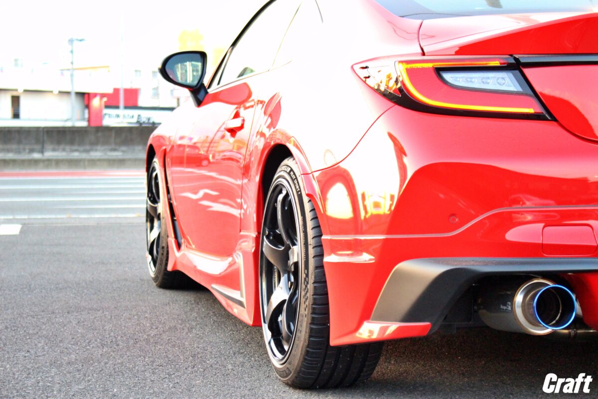今回のGR86はローダウン済みのクルマなので上記のようにいい具合の出ヅラへ仕上がってくれます!!
