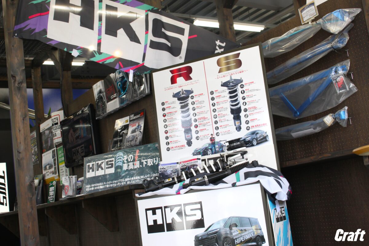 他にもHKSモニターを設置しており、HKSの車高調がどういったものなのかをビデオで説明しております!