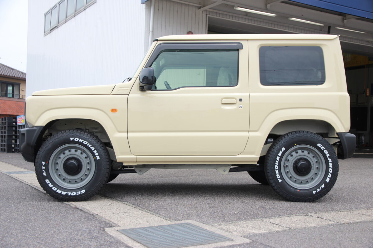 女性人気色No.1のシフォンアイボリーメタリックのジムニーに